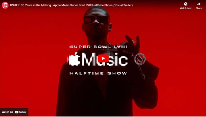 Apple Music just released a trailer for Usher’s halftime show, set to his hit song “Yeah!”